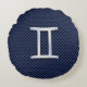 Silver Gemini Zodiac Sign Blue Carbon Fiber Print Round Cushion