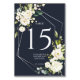 Silver Geometric Navy Blue White Floral Wedding Table Number