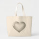 This large tote bag features a shapely silver heart with a glass-like appearance. Click "Customise it!" to re-size/re-position silver glass heart image, change background colour, and/or add personalised text. Great bridesmaid gift. Personalise each bag with the name or monogram of each bridesmaid. The silver glass heart is especially appropriate as a 25th wedding anniversary gift.