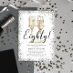 This is an elegant and chic 80th Birthday Party invitation featuring a silvery glitter border, a pair of watercolor champagne glasses and a modern script font. This would be perfect for anyone looking to celebrate their special milestone birthday in style.