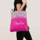 Silver Glitter and Hot Pink Monogram Tote Bag