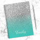 Silver Glitter and Turquoise Ombre Personalized Notebook