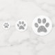 Silver and grey glitter pattern large table confetti (tablefetti) cat, dog, or animal footprints to sprinkle on tables at a cat or dog theme baby shower, pet birthday party or shelter fundraiser event. No puppy or kitten theme birthday for a little girl or boy, or adult who loves animals, is complete without added fun of sparkly looking paw prints on the tables.