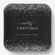 Silver Glitter Black Name Merry Christmas Paper Plate