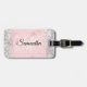 Create your own faux sparkly silver glitter and digital art blush pink marble bag tag.