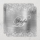 Silver Glitter Brushed Metal Fancy Monogram Invitation