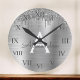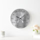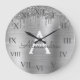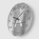 Silver Glitter Brushed Metal Monogram Name Large Clock