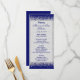 An elegant modern wedding menu with a sprinkled silver glitter confetti effect on a rich royal blue background. A classy design, for any kind of weddings. Also available are matching place cards and table number cards. The font can be changed to style you like.