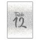 An elegant monogram wedding table number card  with a sprinkled silver confetti glitter on a white background. A striking design for your special day. Also available are matching wedding place cards, menus and wedding invitations. The font's style, colour and placement can also be changed any way you like.