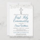 Silver Glitter Cross Script First Holy Communion Invitation