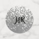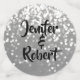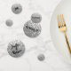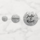 Silver glitter crystals wedding personalised confetti with name, date and other text on a silver glitter background