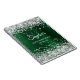 Girly faux sparkly silver glitter on the top and bottom edge, over a faux dark green brushed metal style shiny foil.