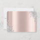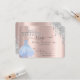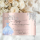 Elegant silver glitter drips, and blue dress on a rose gold background.