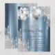 Silver Glitter Drips Balloons Blue Metallic 90th Invitation