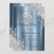 Silver Glitter Drips Blue Metallic 50th Birthday Invitation