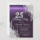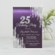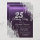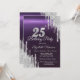 Silver Glitter Drips Dark Purple 25th Birthday Invitation