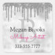 Silver Glitter Drips, DIY Name, Monogram Title Blk Square Sticker