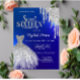 Silver Glitter Drips,Dress Blue Sweet 16 Invitation