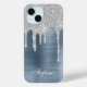 Silver Glitter Drips Dusty Blue Glam Girly Case-Mate iPhone Case
