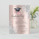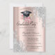 Silver Glitter Drips Floral Grad Cap Rose Gold Invitation