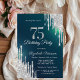 Silver Glitter Drips Green 75th Birthday Invitation