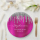 Silver Glitter Drips Hot Pink Foil 50th Birthday Paper Plate