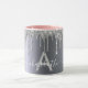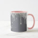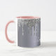 A girly and trendy monogrammed mug. A chic faux silver looking background decorated with faux glitter drips, paint dripping look. Personalise and add a name and monogram letter. White and grey coloured letters. The name is written with a modern hand lettered style script with swashes.  To keep the swashes only delete the sample name, leave the spaces or emoji's in front and after the name.
