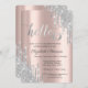 Silver Glitter Drips Rose Gold 40th Birthday Invitation