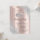A modern, chic, and glamourous with silver glitter drips on a rose gold background.