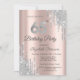 Silver Glitter Drips Rose Gold 65th Birthday Invitation