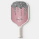 Silver Glitter Drips Rose Gold Pink Monogram Name Pickleball Paddle