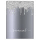 Girly and glamourous. A faux silver metallic looking background with faux glitter drips, paint dripping look. Personalise and add a name. The name is written with a modern and trendy hand lettered style script with swashes. White coloured letters.