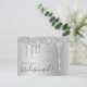 This modern invitation design features faux silver dripping glitter metallic texture and elegant calligraphy font.