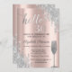 A modern, chic, and glamourous glitter drips, and wine glass on a rose gold background.