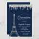 Silver Glitter Eiffel Tower,Drips Quinceañera Invitation