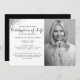 An Elegant and unique presentation for your celebration of life invitation with Grey Glitter and the custom black and white photo of the beloved deceased. the invitation comes also with calligraphy and a script to decorate it.