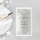 A faux silver looking background. Decorated with faux glitter sparkles. Personalise and add your names and a date. Mr and Mrs with a heart.