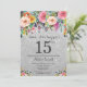 Silver Glitter Floral Surprise 15th Birthday Invitation