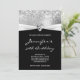The customisable birthday invitation in an elegant calligraphy font is white against solid black.