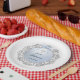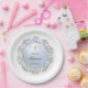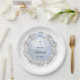 Silver Glitter Frame Blue Bow Baptism Paper Plate