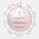 Silver Glitter Frame Pink Bow Baptism Classic Round Sticker