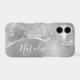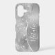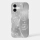 Easily personalise this silver brushed metal and glamourous faux glitter patterned phone case with your own custom name.