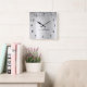 Silver Glitter Glam Metal Monogram Name Square Wall Clock
