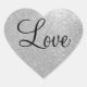 Faux silver glitter heart shape stickers. Silvery texture with fake sprakles and glimmers. Personalizable love text in elegant typography style. Chic design for wedding party favours, envelope seals etc.