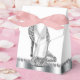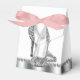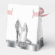 Beautiful silver glitter high heel shoe party favour boxes. These elegant black and silver glitter high heel shoe favour boxes can be customised with text and you can change the background colour and bow colour.