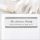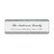 Custom-designed Christmas return address labels featuring classic style family name on silver glitter style background.