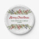 Silver Glitter Holly Berries Christmas Party Paper Plate