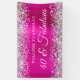 The background features a faux sparkly silver glitter on the top edge with a fuchsia, magenta and hot pink brushed metal ombre foil digital art graphic.