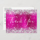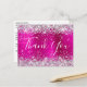 Silver Glitter Hot Pink Foil Baby Shower Thank You Postcard
