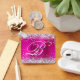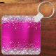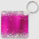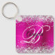 Silver Glitter Hot Pink Foil Fancy Monogram Key Ring